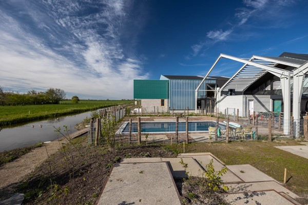 3. Gemeenschappelijke binnen en buitentuin met zwembad, moestuin en speeltuin