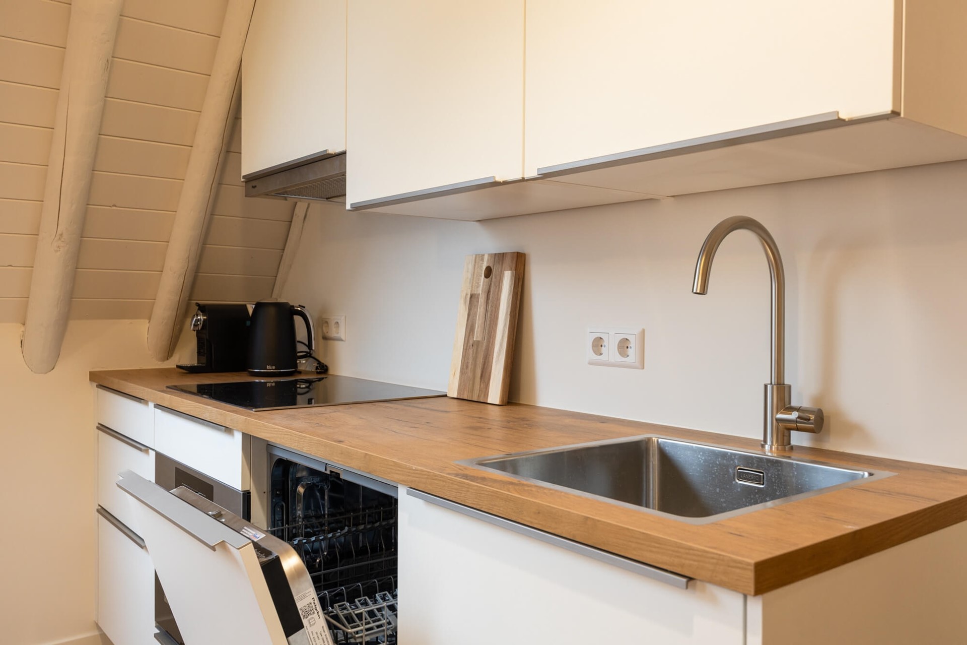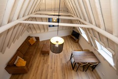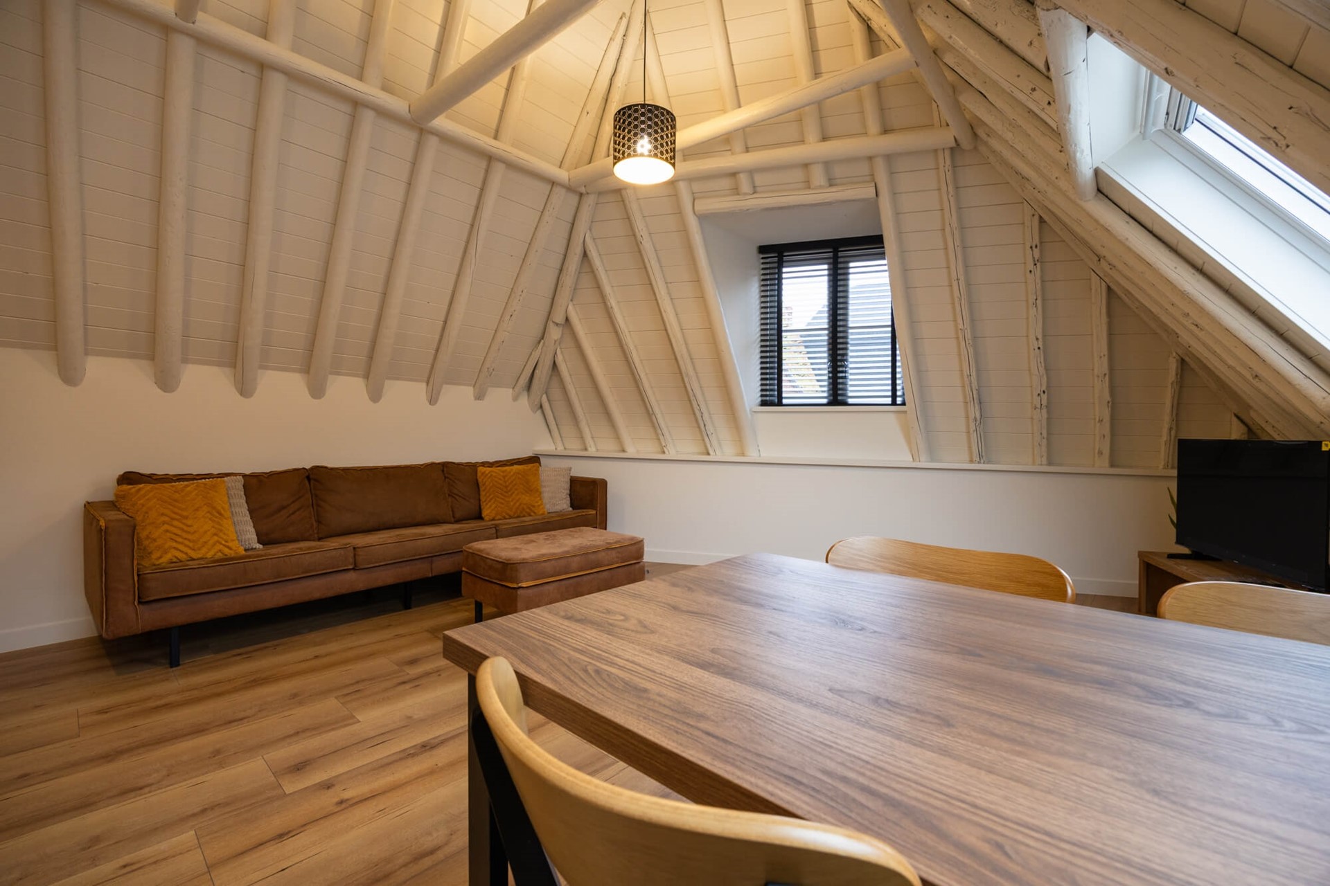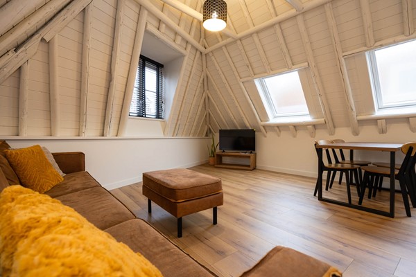 Een heerlijk appartement met veel daglicht. De wanden en het plafond zijn strak afgewerkt. De zithoek heeft een heerlijke loungebank en een grote flat screen Smart-TV. De eettafel met een bank en stoelen, daar kunt u heerlijk genieten van het diner. De keuken is compleet ingericht; kookgedeelte, oven/magnetron, vaatwasser, koelkast tot en met een koffiemachine. De badkamer is voorzien van een inloopdouche, toilet een mooie houtlook badkamermeubel. De slaapkamer heeft een kledingkast en tweepersoonsbed. Extra bonus is de vide, waar ook nog een tweepersoonsbed staat.