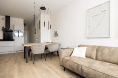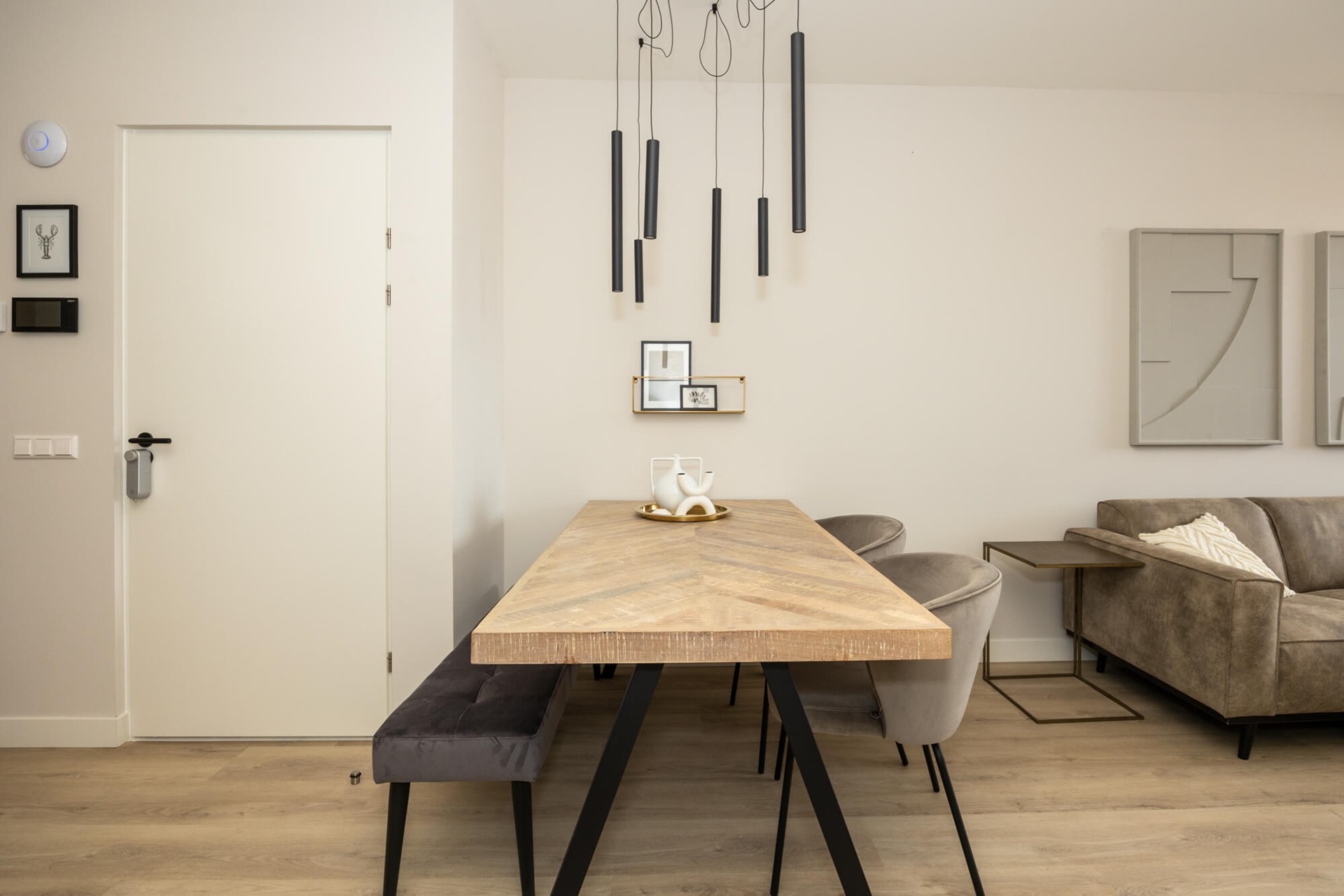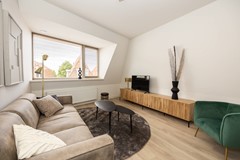 A delightful apartment with plenty of natural daylight. The spacious living room features a beautiful bay window that allows abundant natural light to enter. You overlook the shoppers on Grote Noord—how charming is that! The walls and ceilings are neatly finished, and the original wooden beams of this listed building have been preserved, giving the apartment its authentic character.