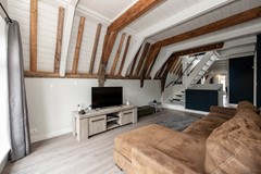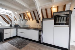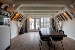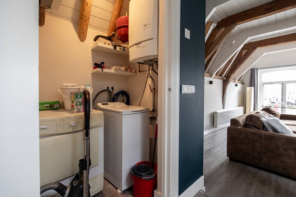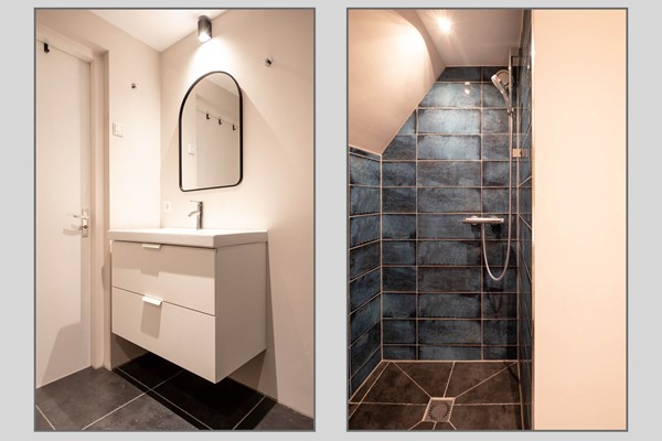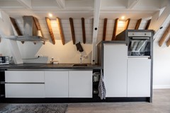 1st floor: entrance of the house, a spacious living room and a complete kitchen layout with cupboard space, all equipped with various built-in appliances such as an induction hob, extractor system, dishwasher and a combination microwave and oven. A large fridge-freezer combination is also available. Your private roof terrace is accessible from the kitchen. Between the kitchen and living room is the bathroom with sink, walk-in shower and toilet. Next to the bathroom is a storage cupboard where the washing machine/dryer connection is located, as well as the central heating boiler.
