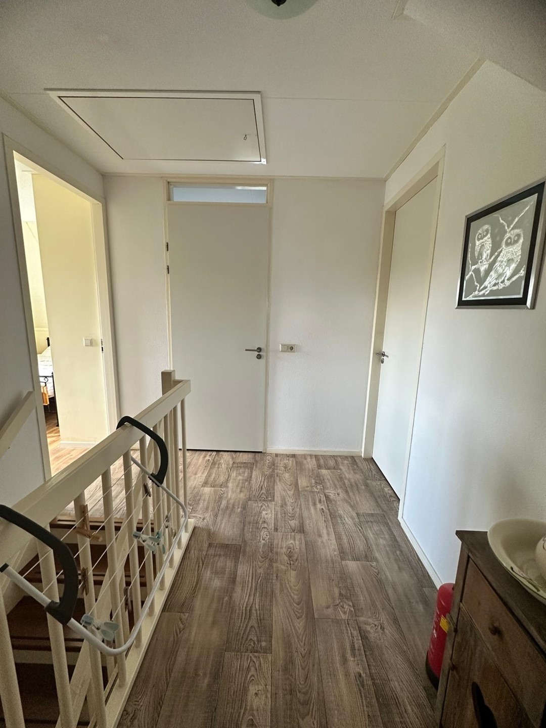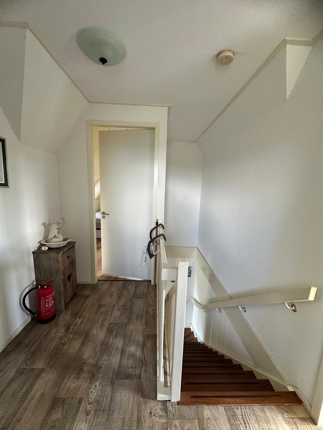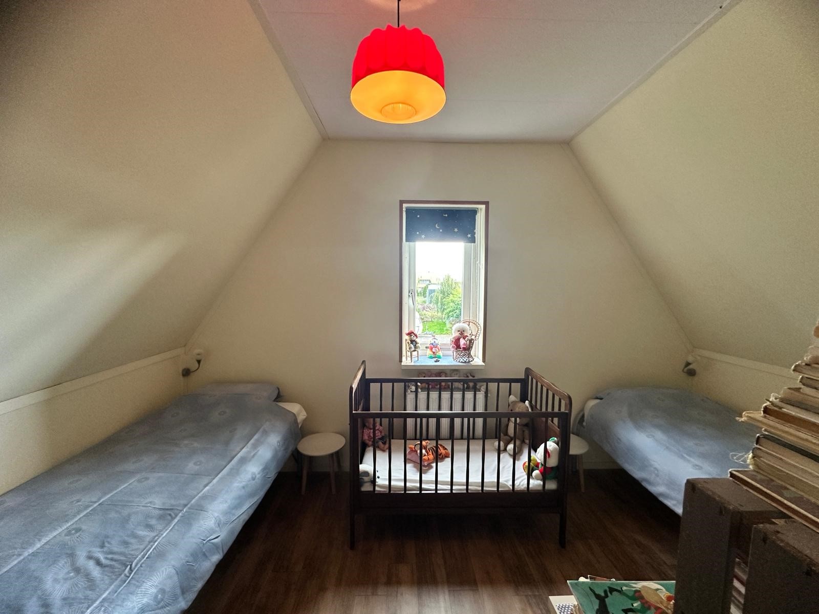 Op de eerste etage bevinden zich twee ruime slaapkamers. De masterbedroom beschikt over een tweepersoonsbed en bureau. De tweede slaapkamer heeft twee eenpersoonsbedden en biedt daarnaast ruimte voor een ledikant. De moderne badkamer is voorzien van een extra toilet, ligbad, aparte douche en wastafel. Handdoeken drogen vanzelf aan de radiator. Kortom: een comfortabele woning met luxe voorzieningen, ideaal voor zowel ontspanning als werken vanuit huis. En het uitzicht? Dat verveelt nooit!