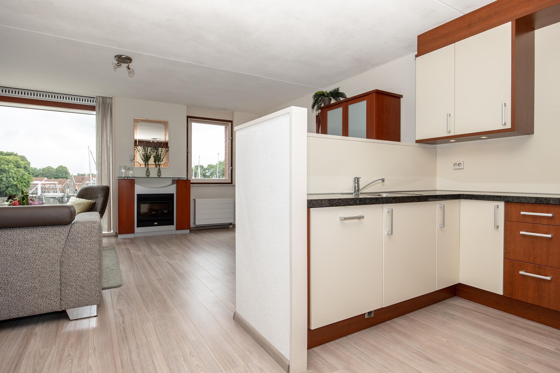 De moderne keuken in U-opstelling is uitgevoerd in noten en crème en beschikt over een granieten werkblad. Verder vindt u hier een combi-magnetron, een inductie kookplaat met schouwkap, 1 ½ spoelbak, vaatwasser en een koel/vriescombinatie. De 2 slaapkamers zijn beiden fris uitgevoerd en voorzien van een laminaatvloer. De grootste kamer heeft een Frans balkon op het westen, terwijl de kleinste slaapkamer kan dienst doen als logeerkamer of kantoor.
