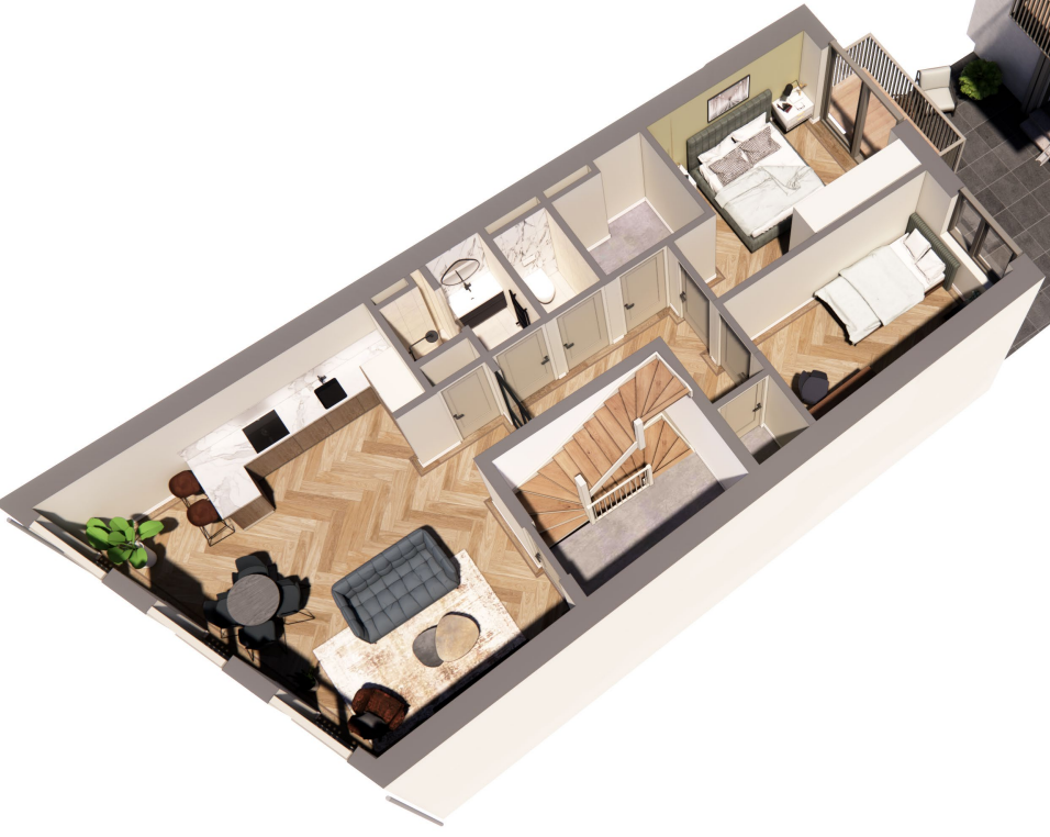 Aan de Grote Noord 79 is een bijzonder renovatieproject gerealiseerd waarbij een karakteristiek pand volledig is herontwikkeld tot vijf luxe appartementen. Elk appartement is instapklaar, afgewerkt met oog voor detail en uitgerust met moderne voorzieningen. Hier woon je niet alleen comfortabel, maar ook stijlvol – midden in het bruisende hart van Hoorn.