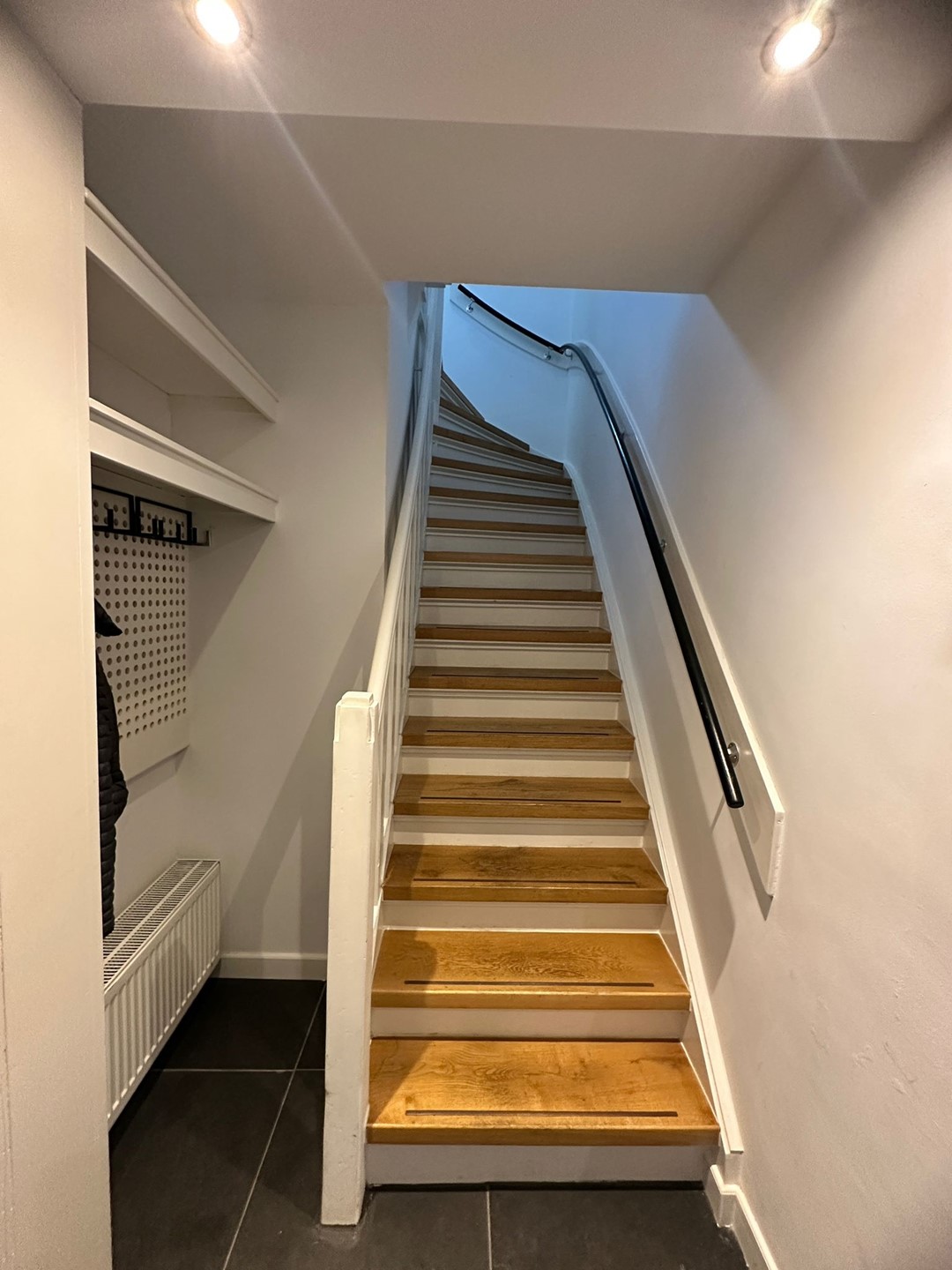 Eigen entree, met een trapopgang naar de eerste verdieping. Bij binnenkomst zie je al een stukje van de woonkamer en loop je zo door de keuken. De woonkamer is ruim en heeft veel natuurlijk daglicht. De wanden en het plafond zijn strak afgewerkt. De zithoek heeft een heerlijke loungebank en een grote flat screen Smart-TV. De piano en de schouw geven de ruimte een knus gevoel. De eettafel heeft een Scandinavische look en daar kun je heerlijk genieten van het diner. De keuken is compleet ingericht; uitgebreid kookgedeelte met ruime oven, een aparte magnetron, vaatwasser tot en met een waterkoker en een koffiezetapparaat. In de gang is een apart toilet en een ruime berging waar de wasmachine met droger staat en waar de jassen opgehangen kunnen worden en de stofzuiger uit het zicht staat.