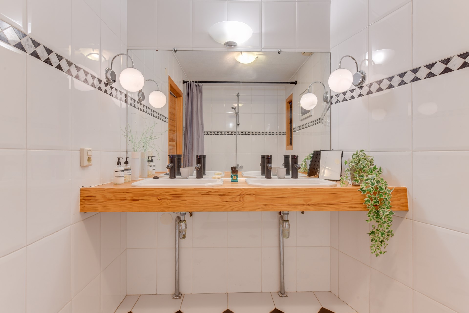 Op de begane grond is tevens een slaapkamer aanwezig met directe toegang tot de badkamer, voorzien van ligbad, douche en dubbele wastafel. Daarmee is de woning levensloopbestendig.