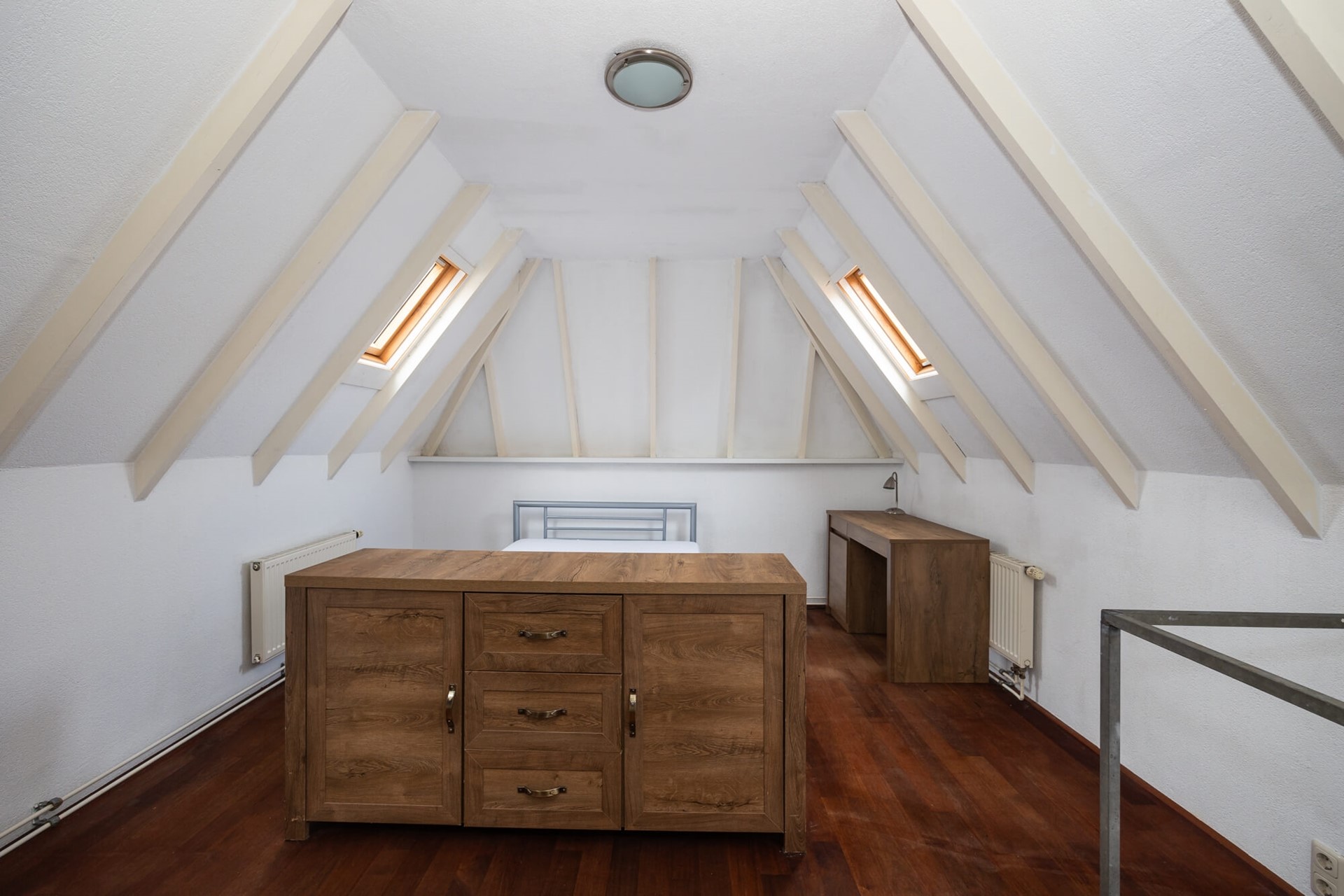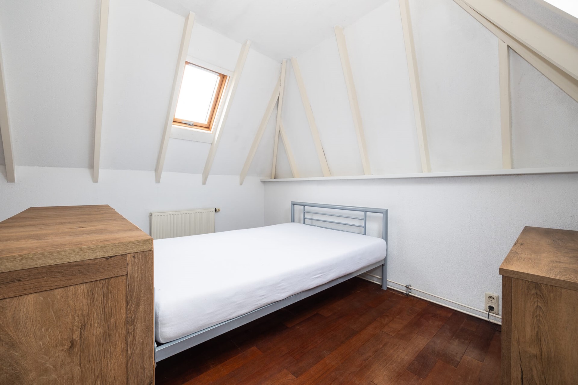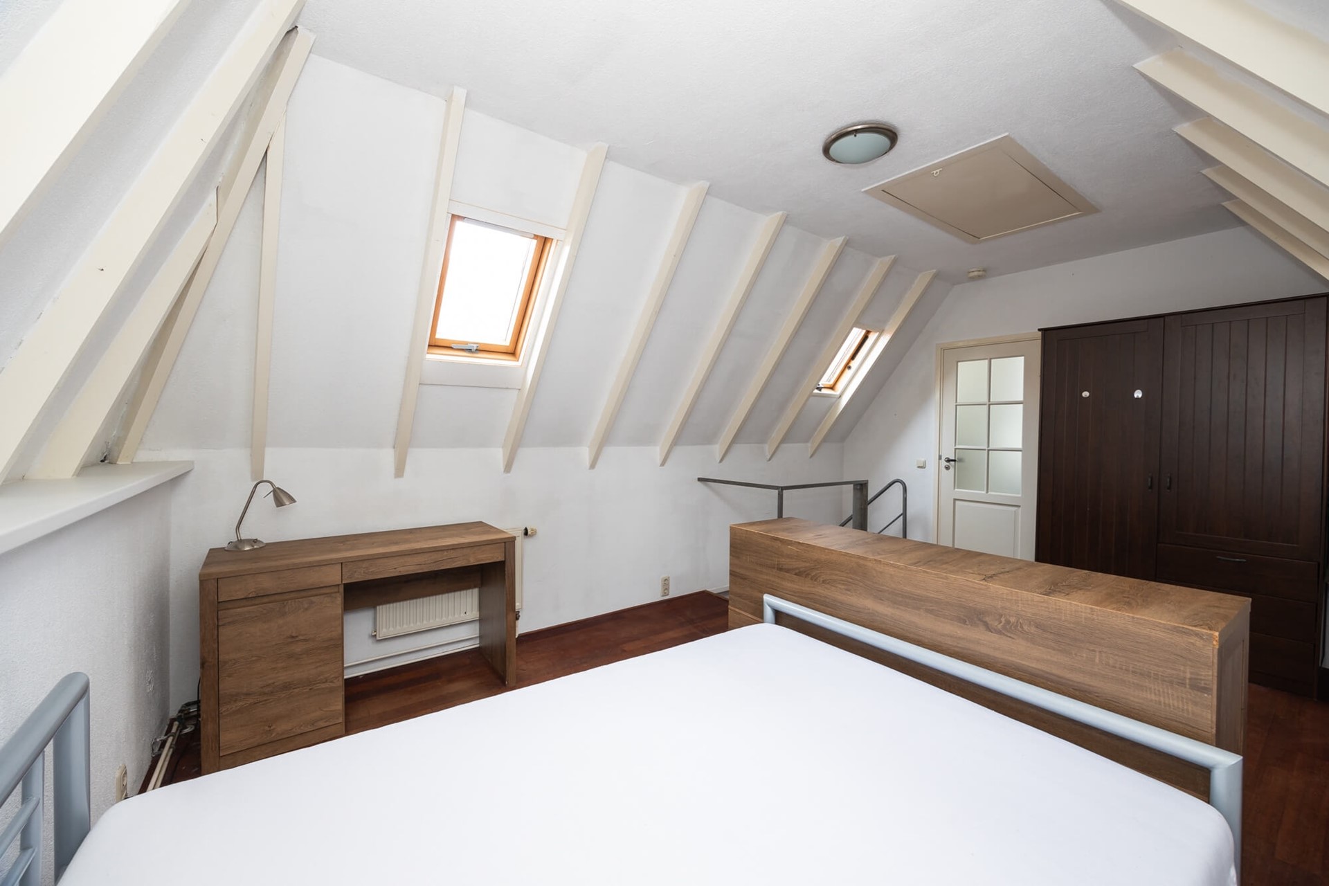 Aan de voorzijde van de woning is de ruime slaapkamer, over de hele breedte van het huis. Hier zijn verschillende dakramen geplaatst voor natuurlijke ventilatie en daglicht. Er is voldoende ruimte voor een tweepersoonsbed en een kledingkast.