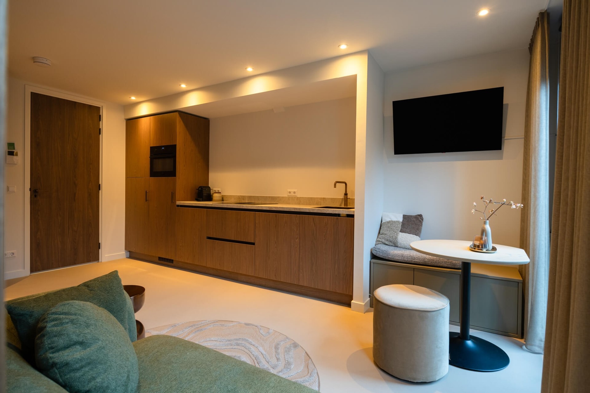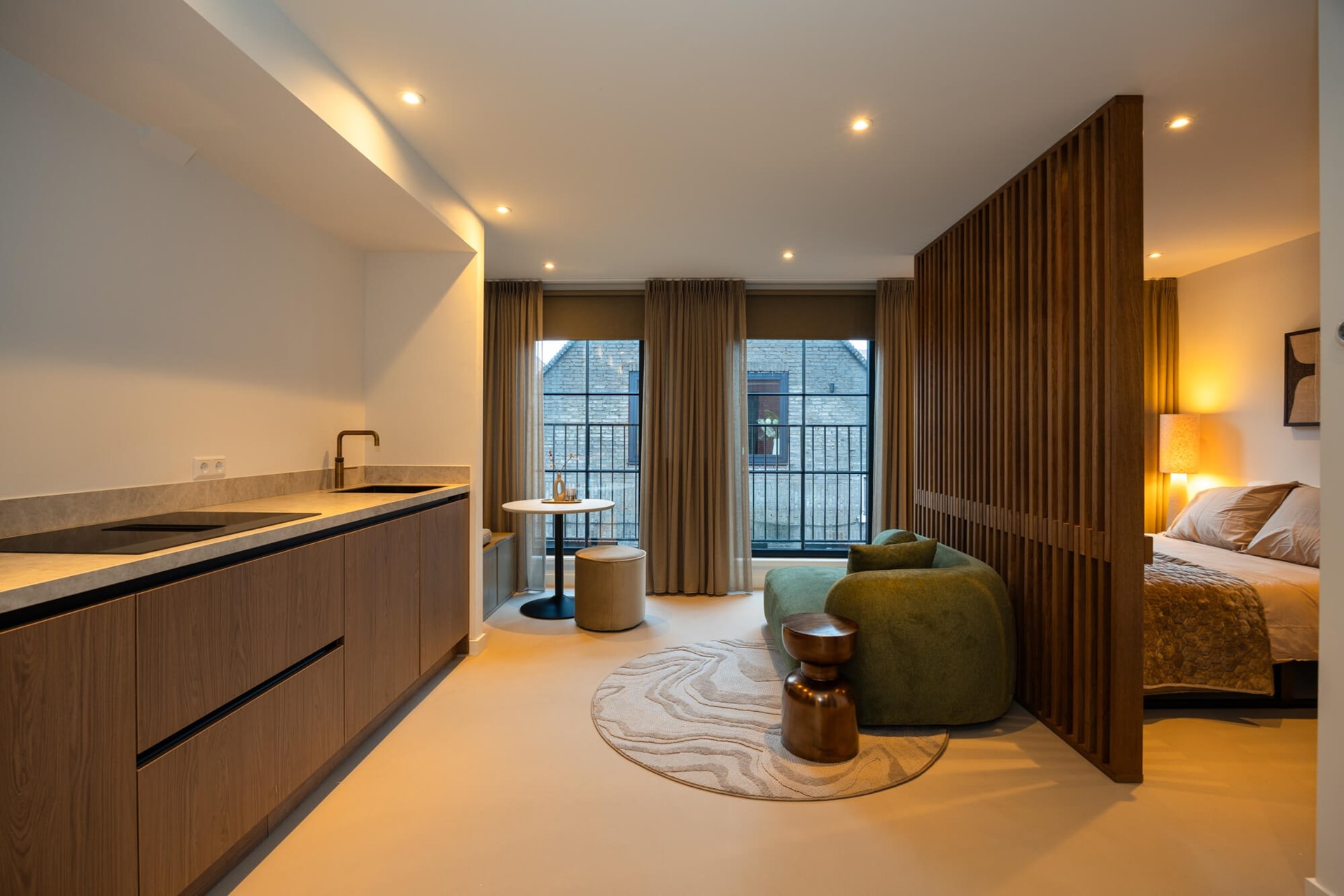 De zes appartementen en studio’s zijn volledig nieuw gerealiseerd en ontworpen met oog voor detail, comfort en luxe. Elk verblijf is voorzien van een moderne keuken, luxe badkamer, goede lichtinval en efficiënte indeling. De combinatie van een stijlvolle afwerking en een warm interieur zorgt voor een bijzonder aangename sfeer. Hier woon je tijdelijk, maar wel met het gevoel van thuis. Alles is instapklaar en turn-key, wat het bijzonder geschikt maakt voor de short stay markt.