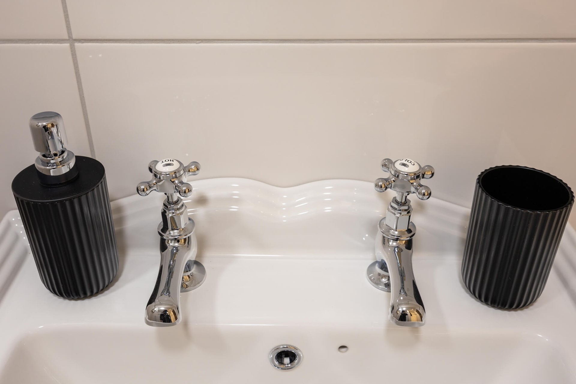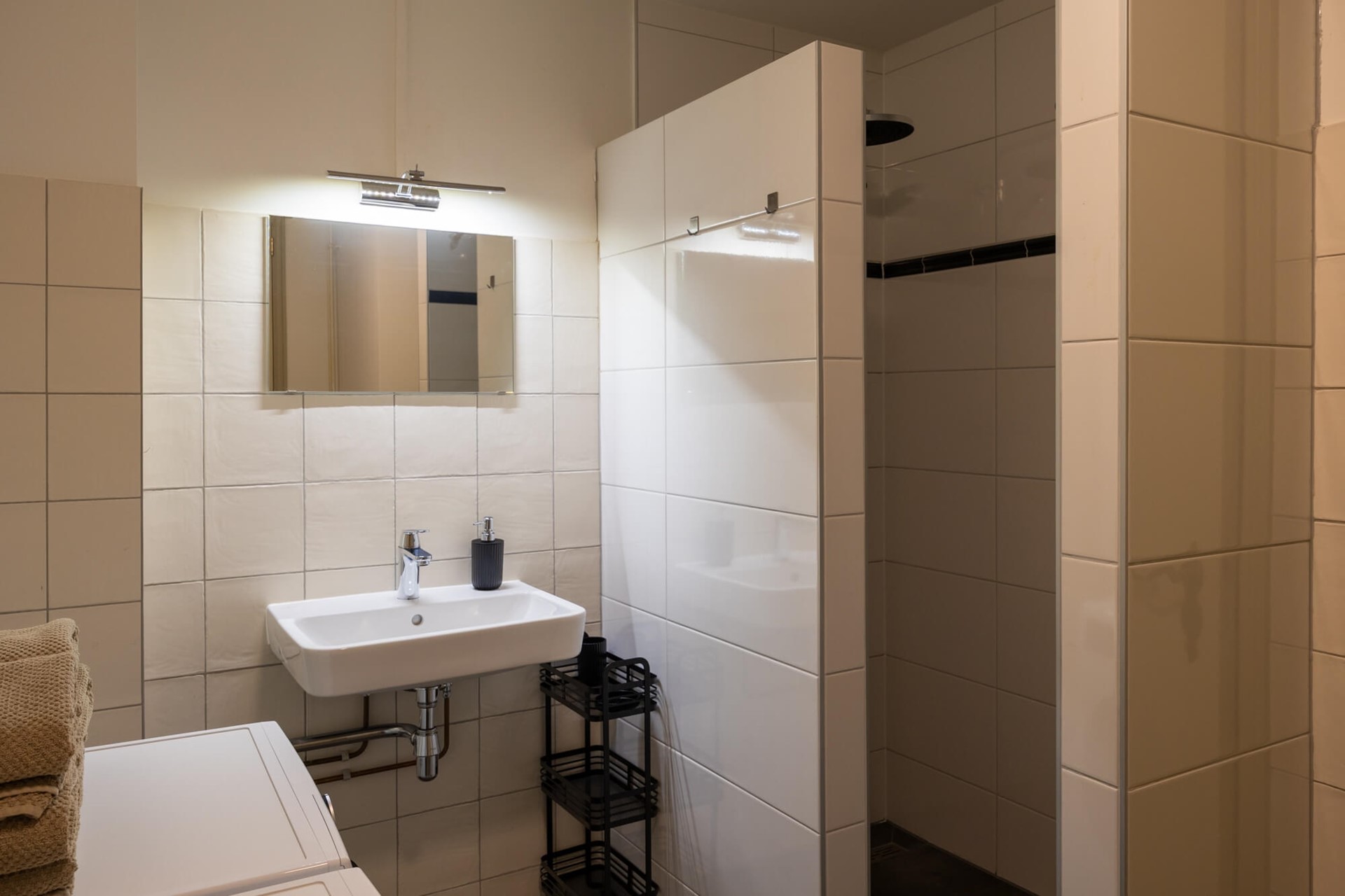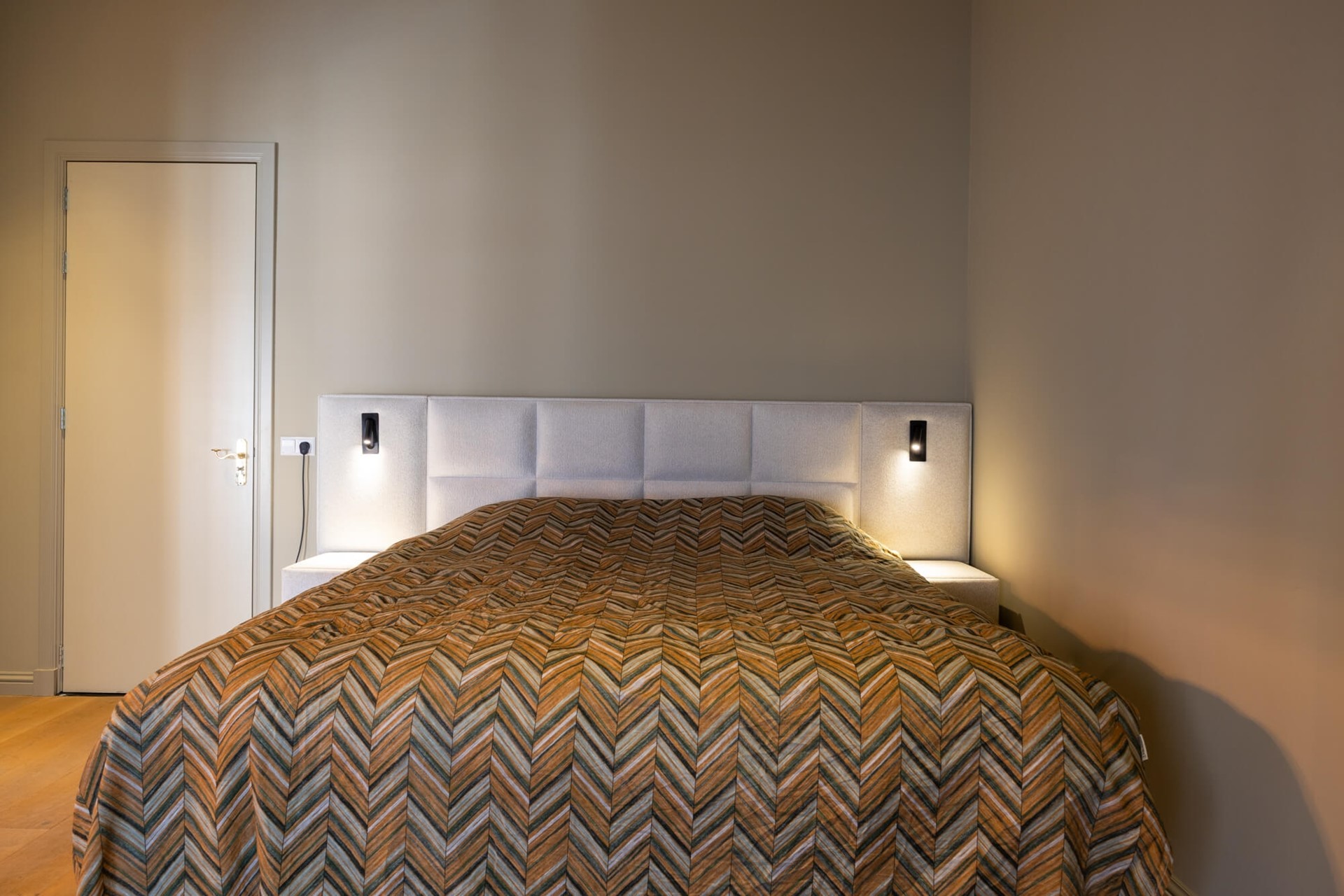 Het appartement telt twee comfortabele slaapkamers. De grootste kamer heeft stijlvolle en-suite deuren naar de lichte woonkamer en beschikt over een luxe badkamer met tweede toilet, wastafel en inloopdouche. De tweede badkamer vind je naast de keuken en is uitgerust met een inloopdouche, wastafel en plek voor je wasmachine. Douchen wordt hier pure ontspanning.