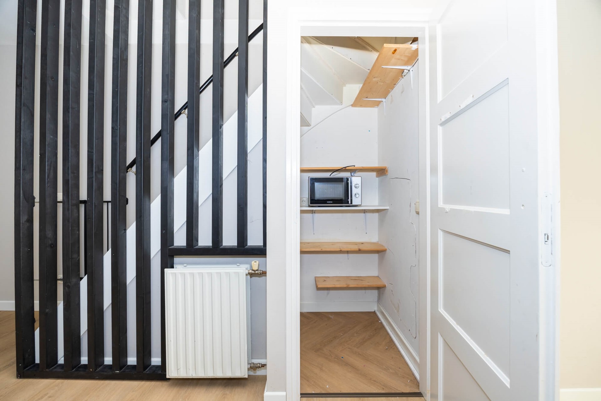 Tevens is er een wasruimte gesitueerd op de overloop waar de wasmachine en droger kunnen staan, ook is hier extra ruimte voor het opbergen van spullen.