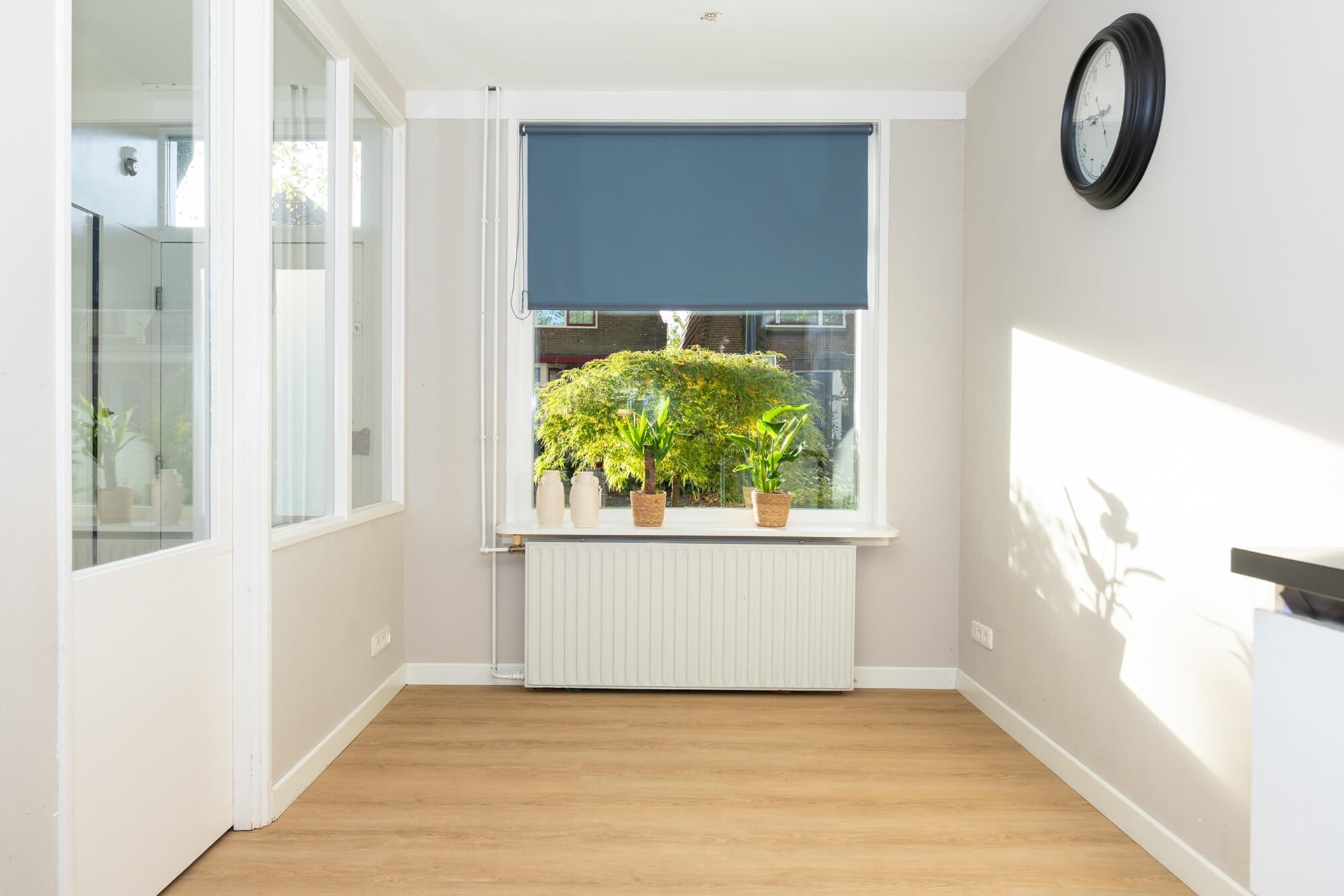Bij binnenkomst valt direct de fijne sfeer op. De woning heeft een ruime hal, een doorzonwoonkamer met grote raampartijen en een houten vloer. De keuken is modern en strak uitgevoerd en voorzien van diverse inbouwapparatuur. Achterin bevindt zich een uitbouw met openslaande deuren naar de tuin: een fijne extra leefruimte, ideaal als eetkamer of thuiswerkplek.