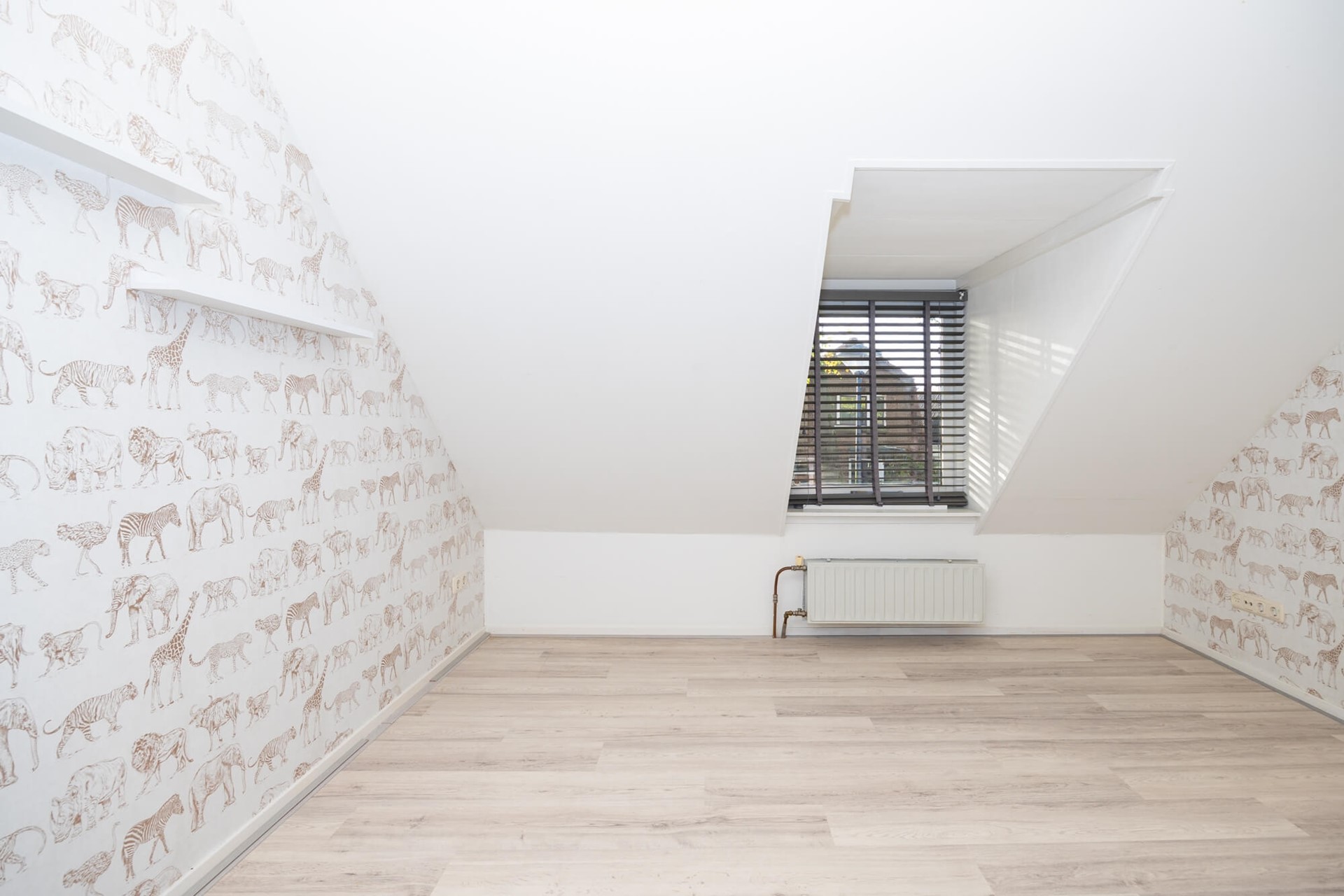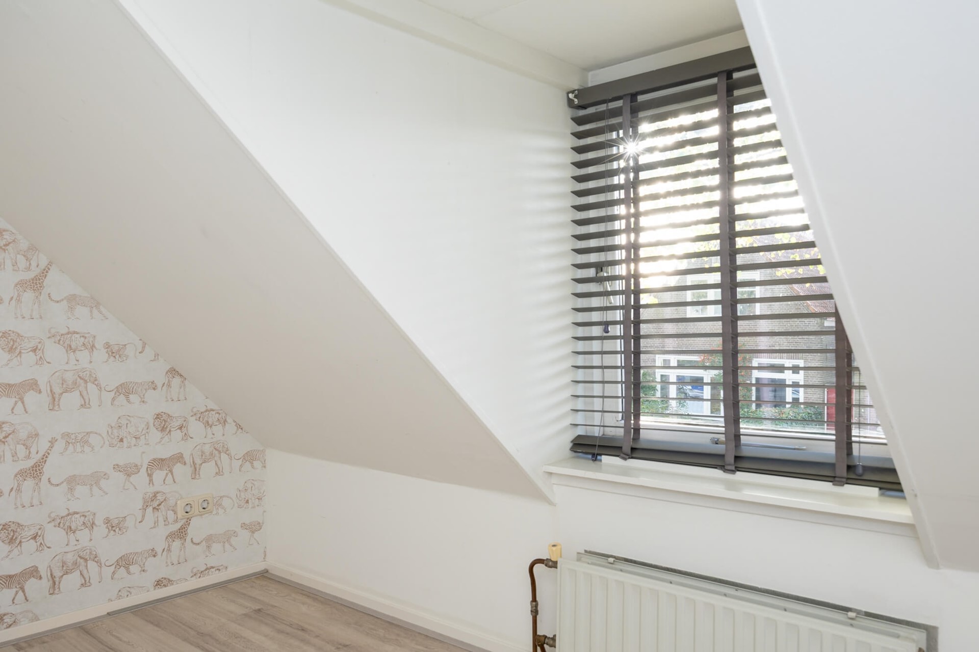 Met een vaste trap kom je op de verdieping met twee slaapkamers met veel lichtinval en strakke afwerking. De slaapkamer aan de voorkant is voorzien van een dakkapel en kijkt uit over de straat. De master-bedroom aan de achterzijde is ruim met voldoende plek voor een kledingkast en een tweepersoonsbed. Door de grote raampartij heb je hier veel licht met uitzicht over de tuin. Ook de moderne badkamer is keurig: fris wit betegeld met een ruime douche en wastafelmeubel. Het daglicht in het plafond zorgt voor licht en natuurlijke ventilatie.