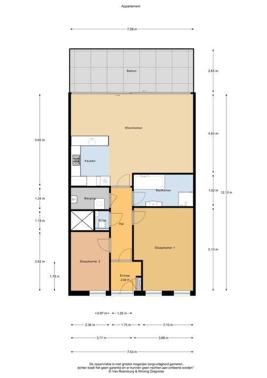 Aantal kamers 3 (waarvan 2 slaapkamers)